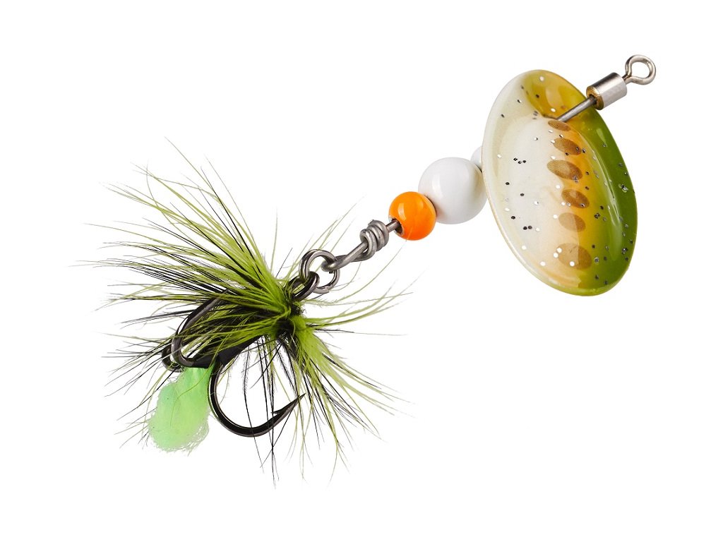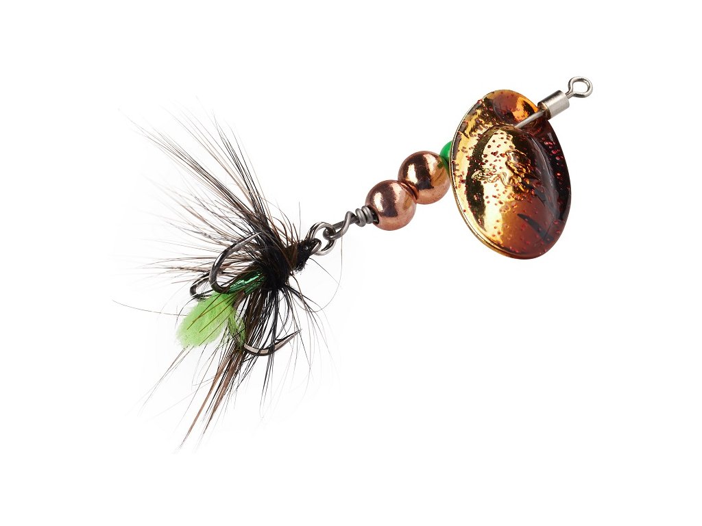 Rotačka určená na lov pstruhov, jalcov alebo ostriežov. Vďaka svojej špeciálnej konštrukcii krídelka je dokonale prispôsobená na lov v potokoch a riekach. Aj v silnom prúde alebo nepravidelných perejách a víroch máte istotu, že sa rotačka bezproblémovo točí. Zakončenie obratlíkom pre minimalizáciu krútenia vlasca a možnosť priameho naviazania na vlasec bez nutnosti používať separátny obratlík. Trojháčik je pripojený pomocou krúžku. Možno ho teda ľahko vymeniť napríklad za jednoháčik. Pierka pre dodatočnú atraktivitu. Veľkosť 0, váha 3,05 g.