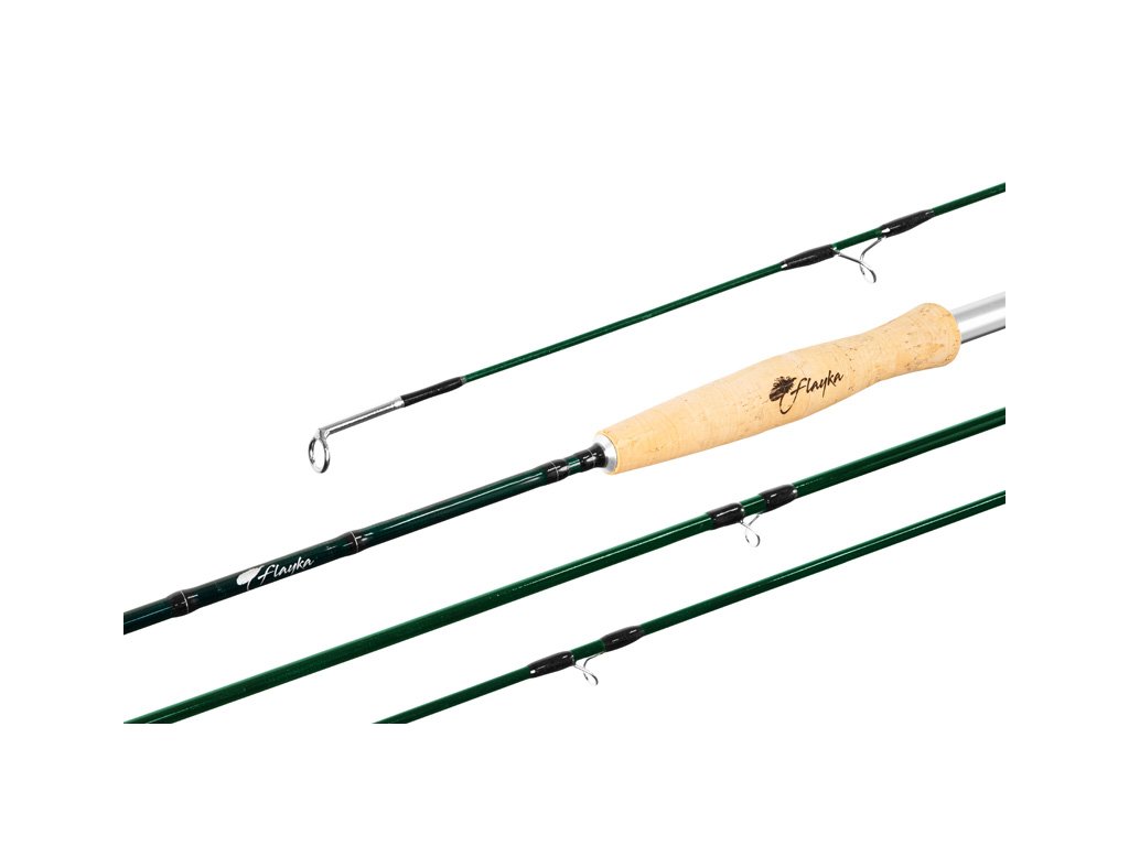 Mysleli sme aj na „kráľovskú“ disciplínu a pripravili sme pre vás sériu muškárskych prútov FLAYKA v obľúbených a univerzálnych gramážach. Vyznačujú sa príjemnou parabolickou akciou a ich univerzálnosť nájde uplatnenie pri love so suchou muškou, nymfami, ako aj pri love na mokro. Elegantný a tenký zelený blank si hravo poradí s akoukoľvek cieľovou rybou. Navádzacie očko (pri AFTMA 5 dve) je dvojstopové, vyplnené keramikou, ostatné očká sú hadovité. Všetky očká, ako aj tzv. hook keeper sú vyhotovené v striebornej farbe. Každý diel blanku je pre rýchle a jednoduché zostavenie označený bodkou, vďaka ktorej budete mať celý prút krásne vyladený v jednej línii. Na rukoväti z kvalitného portugalského korku je vypálením vyobrazená umelá muška. Sedlo navijaka je vyhotovené z odľahčeného hliníka. FLAYKA nepatrí k rýchlym a ostrým prútom, preto si ju určite obľúbia najmä moderní lovci populárnych nymfovacích techník. Prúty sú dodávané v pevnom ochrannom tubuse s popruhom, ktorý si môžete zavesiť aj cez plece.