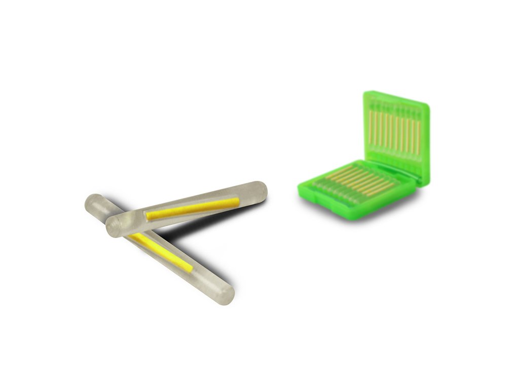 Dôležitý pomocník každého rybára, odteraz v praktickom puzdre, kde má celý obsah presne vymedzené miesto. Nájdete tu prehľadne zoradených až 20 chemických svetiel a bonusom sú 2 trubičkové držiaky. Manipulácia s týmto svetlom je veľmi jednoduchá. Zlomením žltej časti vo vnútri dôjde k chemickej reakcii, ktorá spôsobí svietenie tejto tyčinky. Pre rovnomerné svietenie doporučujeme po zlomení tyčinkou pár krát zatriasť. Odteraz nehrozí žiadne poškodenie chemického svetla pri transporte. Po minutí obsahu balenia je nespornou výhodou možnosť opäť využiť toto puzdro dokúpením svetiel.