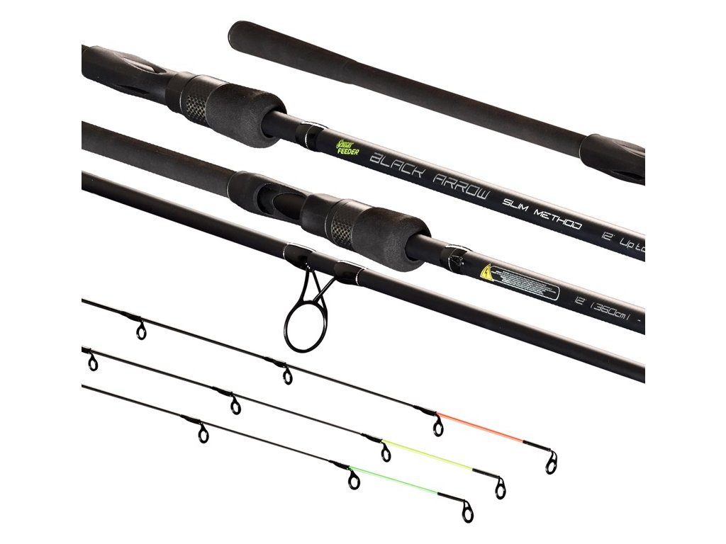Black Arrow Slim Method 12FT: dĺžka 360 cm, vrhacia záťaž 80 g, počet dielov 2+3 špičky, skladná dĺžka 156 cm, váha 182 g.