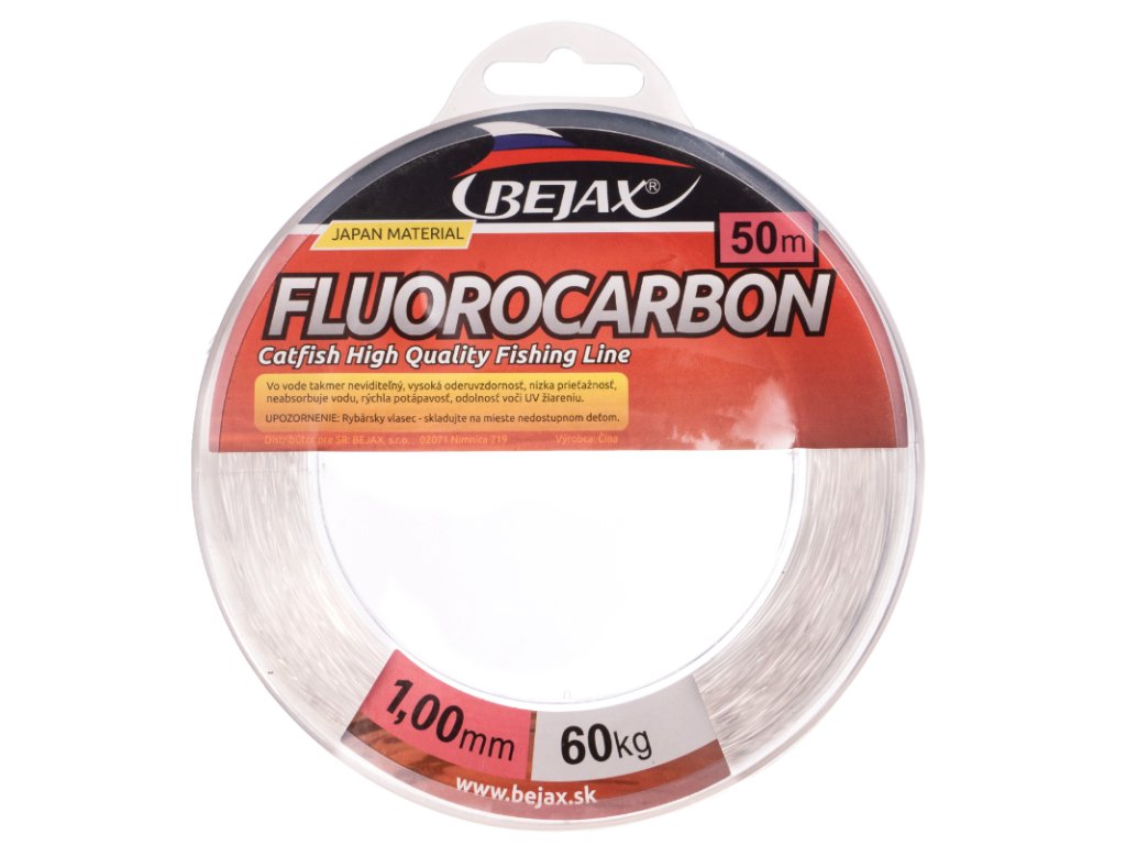 Fluorocarbon BEJAX® je vyrobený novou unikátnou technológiou a vo vode je takmer neviditeľný. Vlasec je ideálny na tvorbu nádväzcov a ponúka vynikajúcou prezentáciu vašej nástrahy. Kombináciou vysokej nosnosti, nízkej prieťažnosťi, pevnosti v uzle a extrémnej odolnosti voči oderu ponúka istotu aj v tých najnáročnejších situáciách. Vďaka vyššej hmotnosti zaisťuje rýchlu potápavosť. Naviac je odolný voči UV žiareniu, neabsorbuje vodu a je vhodný do sladkej aj slanej vody. Vlasec je určený pre lov tých najopatrnejších kapitálnych sumcov.