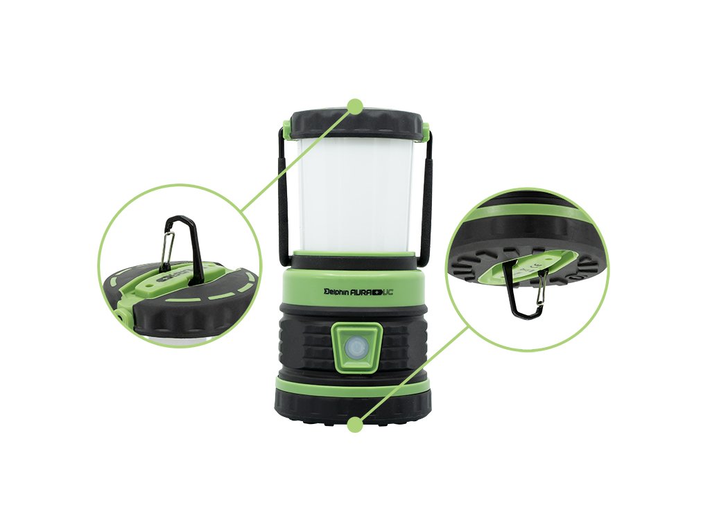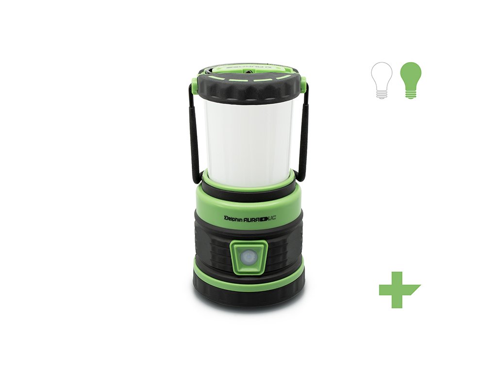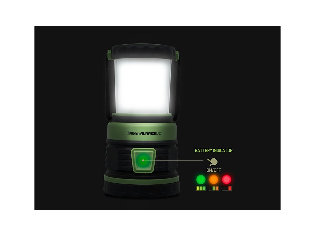 Vylepšená verzia obľúbeného multifunkčného lampáša Delphin AURA. Oproti štandardnému modelu sa pod označení AURA+ ukrýva podstatne vyššia kapacita batérie a zelené svetlo, ktoré nahradilo červené.