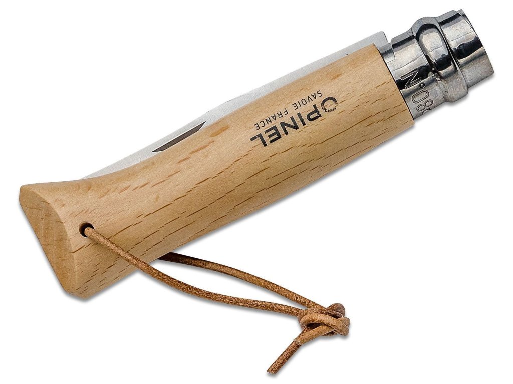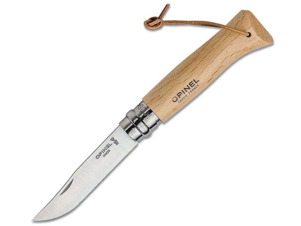Nôž OPINEL Inox VRI No.08 - 8.5cm Adventurer,kožený povrázok Buk