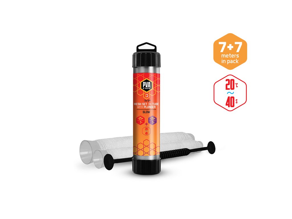 Praktické 2v1 balenie, ktoré pozostáva z kombinácie 25mm a 35mm pančuchy s tubami a plničom. PVA pančucha s predĺženou dobou rozpadu je ideálna na lov počas teplejších mesiacov, alebo pri love vo väčších hĺbkach, kde montáž klesá dlhšie ku dnu. Ide o vysokokvalitný produkt vyrobený v EU, pri ktorom vďaka dôkladnému pleteniu nedochádza k svojvoľnému trhaniu pančuchy a zároveň sa výborne plní aj veľmi jemnými časticami, čím budete môcť spolu s nástrahou poslať do vody aj maximálne atraktívnu návnadu priamo na montáži.