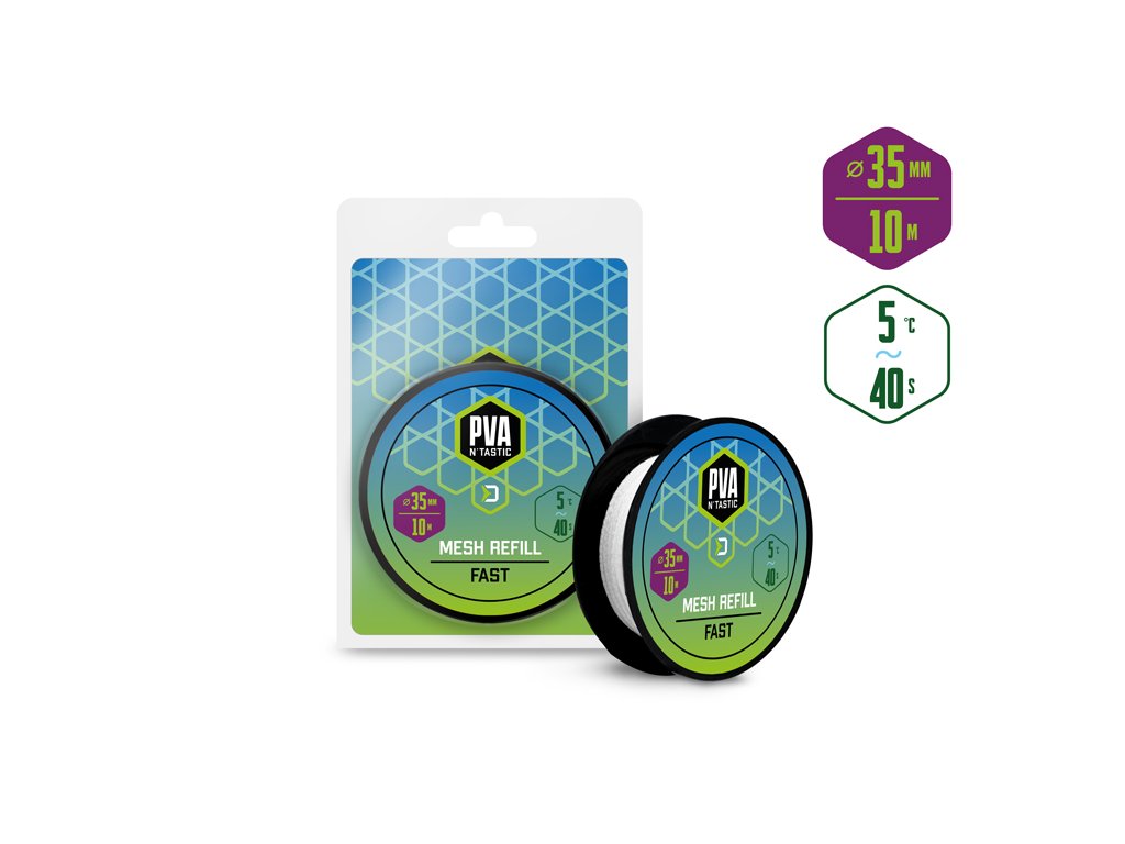 Náhradná PVA pančucha s kratšou dobou rozpadu je ideálna na lov počas chladnejších mesiacov, alebo pri love v plytších hĺbkach, kde montáž klesá kratšie ku dnu. Ide o vysokokvalitný produkt, pri ktorom vďaka dôkladnému pleteniu nedochádza k svojvoľnému trhaniu pančuchy a zároveň sa výborne plní aj veľmi jemnými časticami, čím budete môcť spolu s nástrahou poslať do vody aj maximálne atraktívnu návnadu priamo na montáži.
