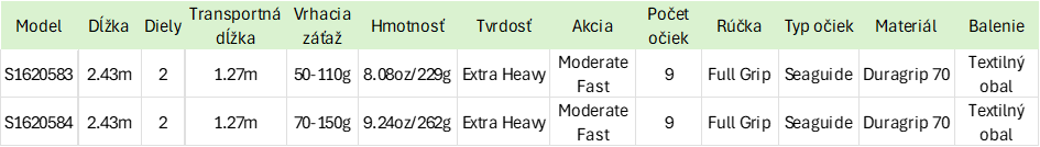 | Varianty prútov: | 2.43m 50-110g; 2.43m 70-150g |