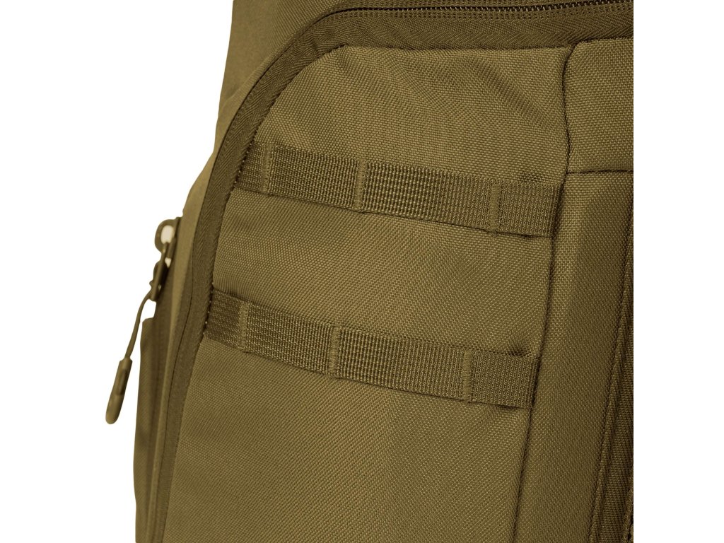 Chrbát plecniaka je bohato polstrovaný pomocou 3D sieťoviny, ktorej tvar zachováva stredový kanálik zlepšujúci odvetrávanie. V hornej časti chrbta nájdete klasické látkové madlo na prenášanie. Nosné popruhy sú plne nastaviteľné, polstrované, disponujú stabilizačnými popruhmi, plastovými trianglami, prievlakmi na pretiahnutie hadičky hydratačného vaku a výškovo nastaviteľným elastickým hrudným popruhom, ktorý je spínaný plastovou prackou. Bedrák batohu je čiastočne polstrovaný, spínaný plastovou prackou a na oboch stranách disponuje menšími vreckami uzatváranými zipsom. Na bokoch batohu nájdete tri rady redukovanej MOLLE/PALS väzby a elastické vrecká. Hlavná chlopňa batohu je vybavená pruhom MOLLE/PALS väzby, priestrannou stredovou priehradkou, vrchným vreckom a malým VELCRO panelom.