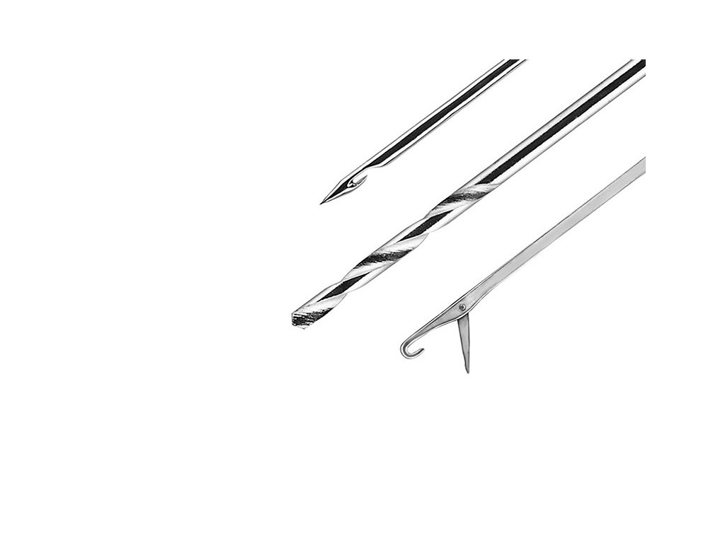 Dômyselne navrhnuté rukoväte ponúkajú pohodlný uchop vďaka svojmu tvaru a pogumovanému povrchu. Okrem toho majú otvor, ktorý umožňuje ihlu, resp. vrták zavesiť, či priviazať k niektorej časti výbavy, tak aby ste ju nemohli stratiť. Všetky pogumované časti rukovätí sú navyše výrazne farebné, čo zaručí, že ich medzi iným príslušenstvom vždy poľahky nájdete.