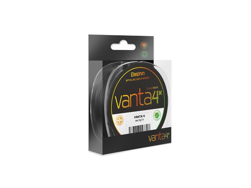 Výnimočná šnúra vyhotovená zo štyroch pevne pletených PE mikrovlákien. Husté pletenie do presného kruhového prierezu a špeciálna povrchová úprava má za následok skvelé kĺzanie v očkách prúta. Jedným z najväčších benefitov šnúry VANTA je jej farebná stálosť. Je vyrobená z čierneho granulátu, čiže nikdy nestratí svoju farbu! Práve čierna farba je v niektorých prípadoch veľmi efektívna, nakoľko dobre kontrastuje s okolitou vodou a rybár má presný prehľad, kde sa šnúra a nástraha nachádzajú. Má vynikajúcu odolnosť voči oderu, ktorú určite ocenia prívlačiari či milovníci feedra. Permanentná farebná stálosť, odolnosť voči oderu a pevnosť sú hlavnými benefitmi šnúry Delphin VANTA 4.