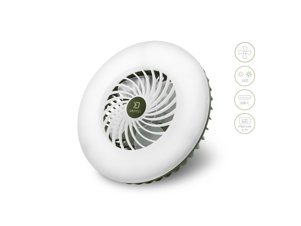 Delphin Ventix je ideálnym doplnkom pre každého milovníka kempovania. Kombinuje výkonné kempingové osvetlenie s ventilátorom, vďaka čomu poskytuje nielen svetlo, ale aj príjemné osvieženie počas horúcich dní a nocí. Na zadnej strane sa navyše nachádza USB port, vďaka ktorému môže Delphin Ventix slúžiť aj ako praktická powerbanka s kapacitou 4400 mAh.