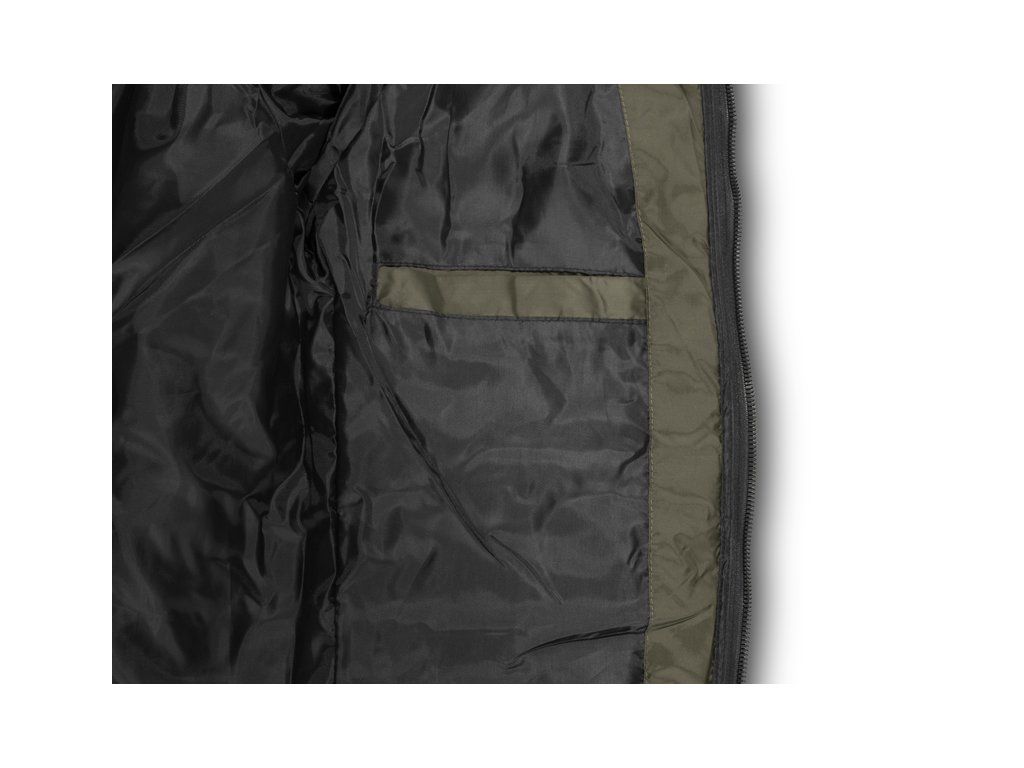 Bunda je vybavená tromi praktickými vreckami na zips – dvoma po bokoch a jedným na hrudi, ktoré ponúkajú dostatok priestoru na drobnosti či zahriatie rúk. Vo vnútornej časti sa nachádza praktické vrecko vhodné na doklady alebo iné cennosti. Samozrejmosťou je kapucňa s vnútornou podšívkou, ktorá poskytuje dodatočnú ochranu počas veterných alebo chladných dní. Elastické manžety a spodný lem pomáhajú udržať teplo pri tele a zároveň zaisťujú, že bunda pohodlne sedí v každej situácii.